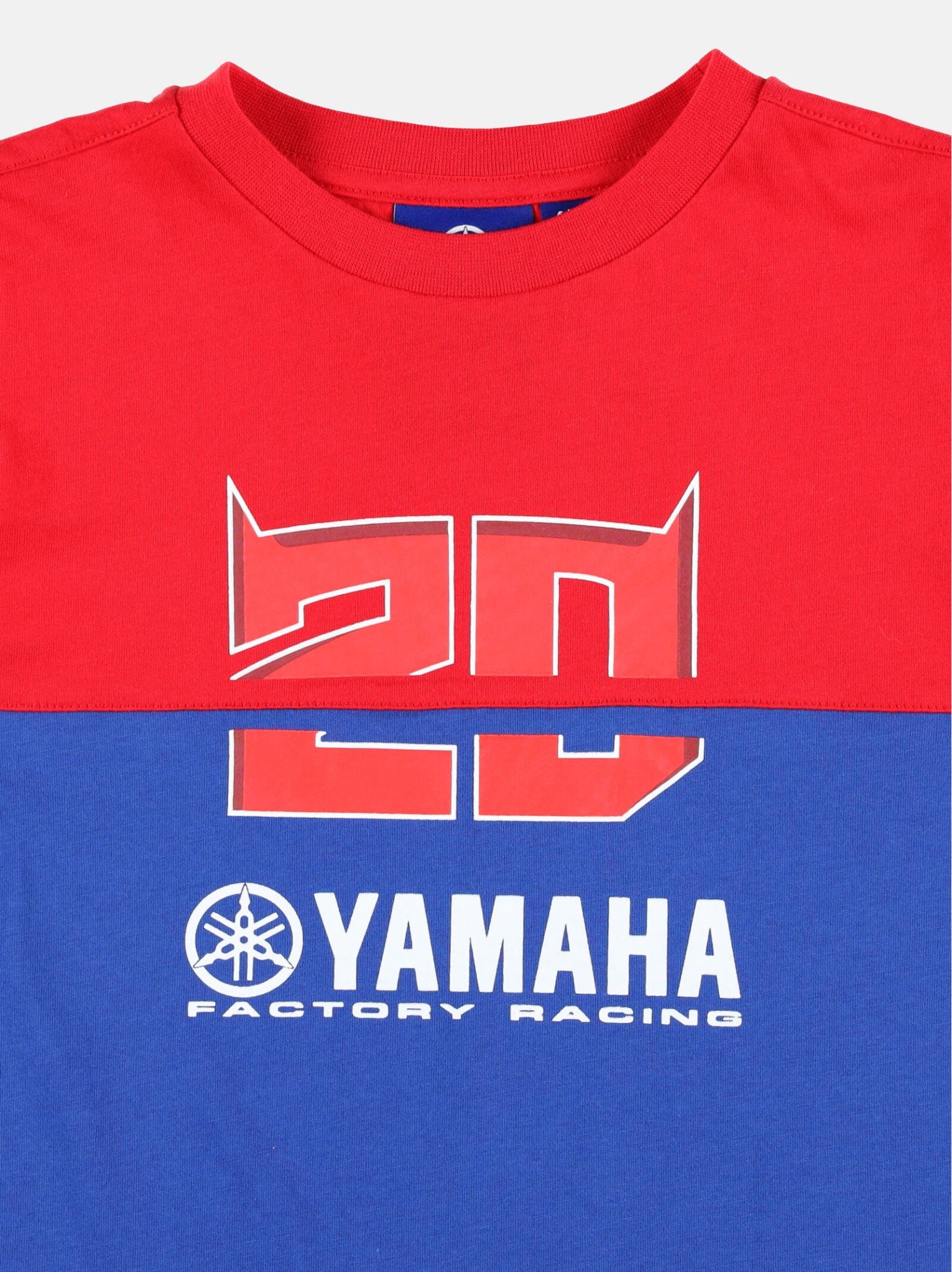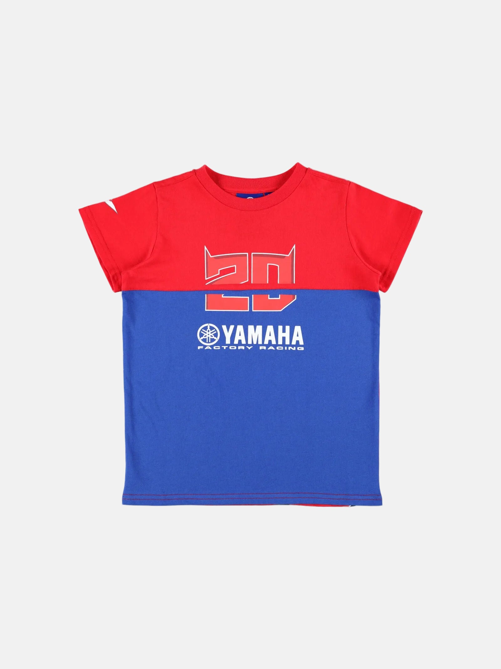 T-shirt da bambino della collezione ufficiale dual Fabio Quartararo Yamaha Factory Racing. Base rossa e blu con stampa centrale del numero 20 e logo Yamaha Factory Racing sul fronte. Occhi El Diablo stampati sul retro. Composizione: 100% cotone